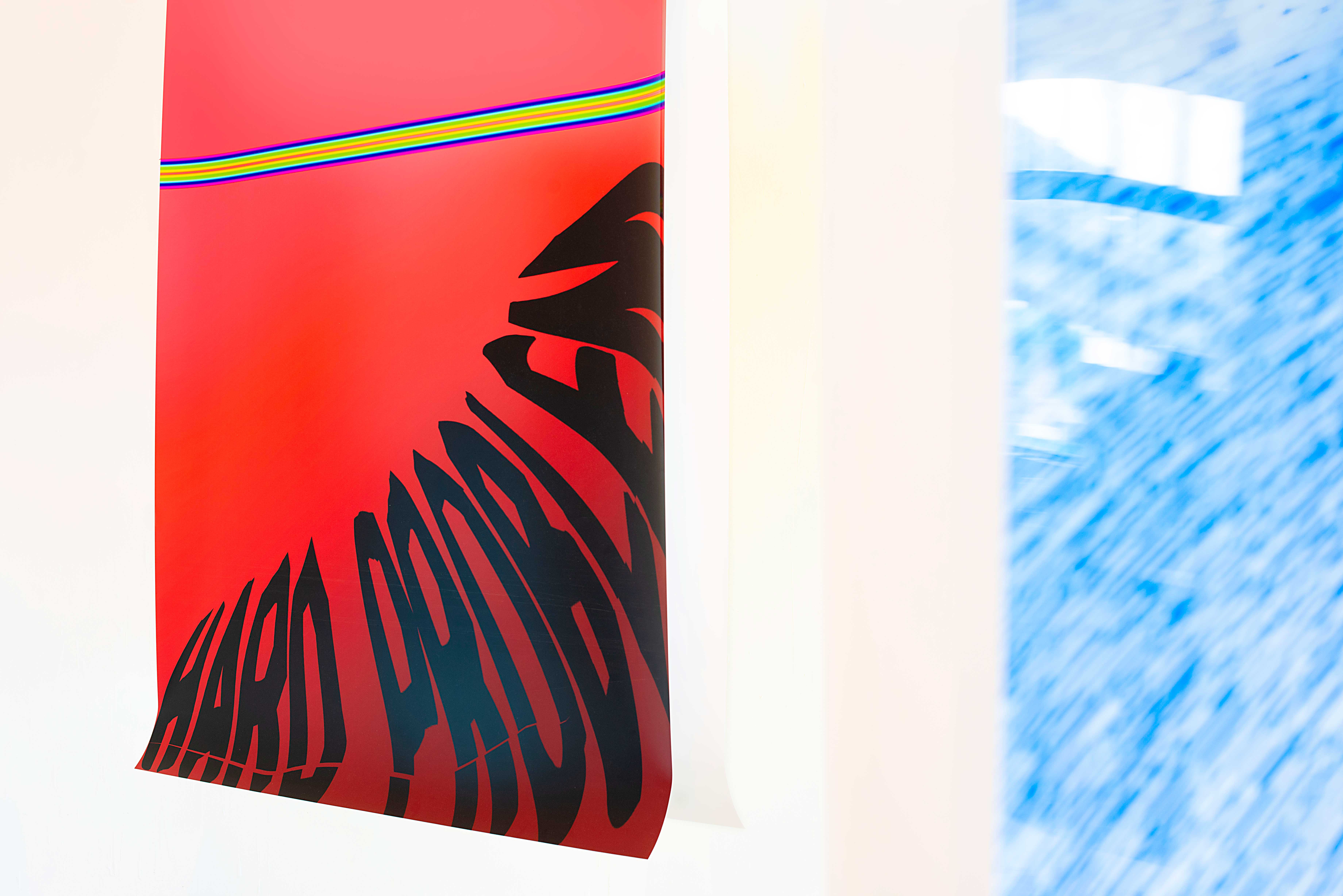 In the centre is the video work Occurring Glade (Onkey/Donkey). This film piece was produced on a smart phone and is displayed using an analogue monitor. It portraits virtual occurrences of the non-physical in moving and evolving shapes and overlays it with excerpts of archival and filmed clips. This technique highlights both the drama and the absurdity of our world. It is also in this threshold that today’s world is defined, negotiated and understood. The shift from the physical to the digital realm emphasises a need for the realisation of the acerbities of binary and normative individualism. RADICAL EMPATHY is an urgent call for immediate de-programming.